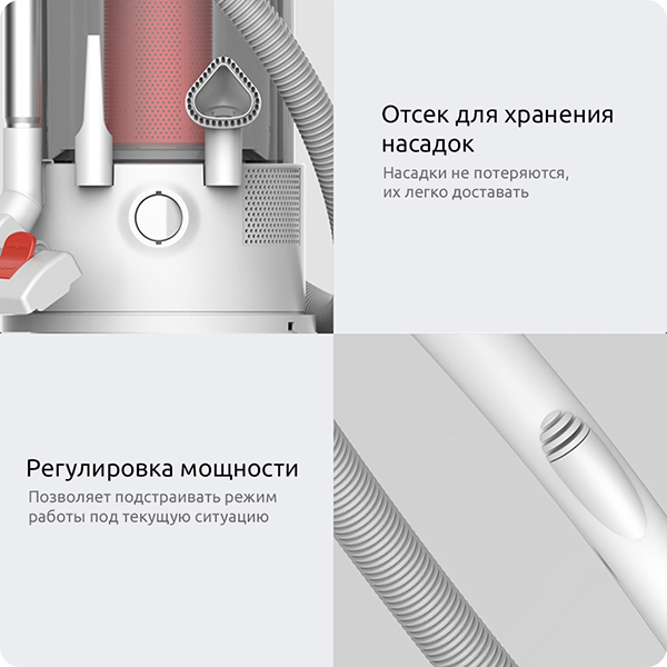 В обычных пылесосах пылесборник и мотор интегрированы с трубкой, что делает процесс очистки пылесборника от мусора затруднительным. Пылесборник, разработанный компанией Deerma, отделен от основного блока с двигателем. Он легко отсоединяется и очищается нажатием на кнопку.