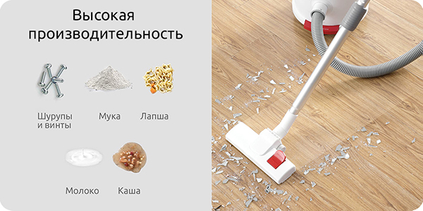 Обычно после ремонта остается много мусора: битое стекло, гвозди, песок. Пылесос Deerma TJ200 может убирать любой мусор в квартире, будь то разбитое стекло или мусор крупных размеров.
