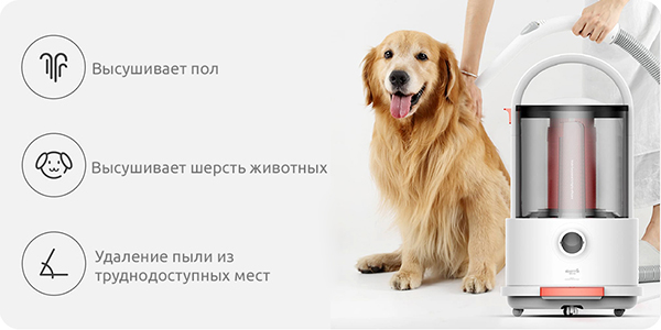Позволяет высушить пол после влажной уборки и шерсть домашнего питомца
