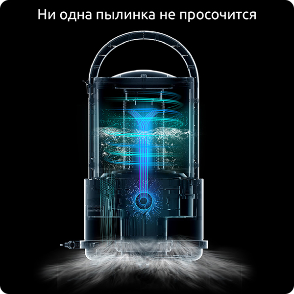 Фильтр способен задерживать даже самую мелкую пыль. Центробежная сила отделяет частицы пыли и грязи от воздуха. Четырехступенчатая система фильтрации включает в себя вентилятор, HEPA-фильтр диаметром 150 мм, фильтр для защиты двигателя и фильтр выходящего воздуха. Благодаря такой системе фильтр остается чистым и не забивается мусором и, соответственно, сохраняется высокая мощность всасывания на протяжении всего процесса уборки.