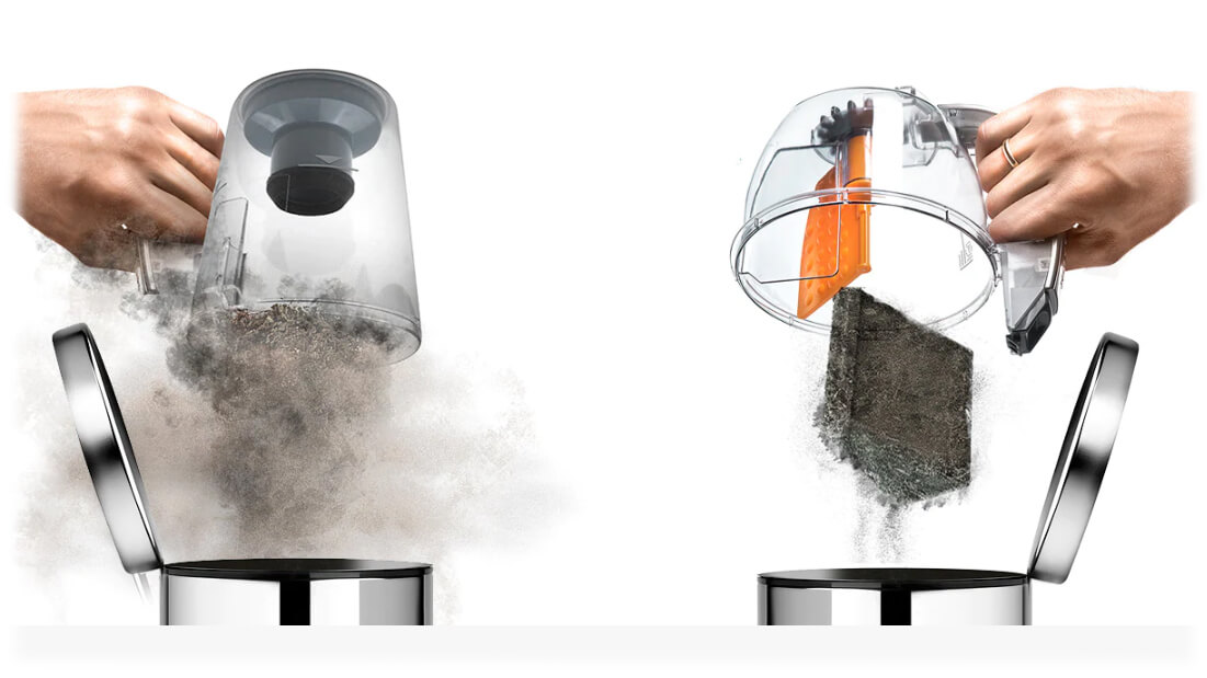 Пыль попадает в моторизированный контейнер, сконструированный для прессования и удобного удаления мусора. Эта технология обеспечивает вам минимальный контакт с пылью.