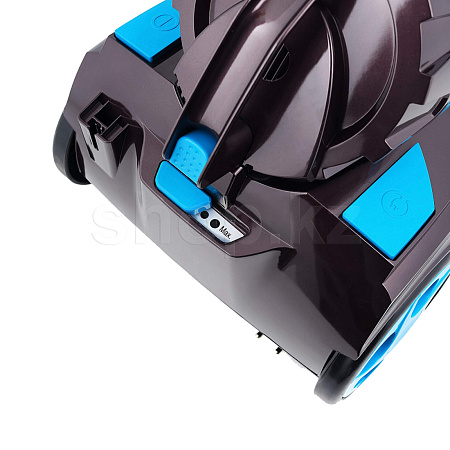 Телескопическая трубка дает возможность настроить длину под свой рост для более удобной уборки. HEPA фильтр удерживает до 99,5% пыли, легко моется и расcчитан на весь срок службы прибора. Корпус пылесоса выполнен из прочного пластика коричневого цвета с яркими синими вставками.