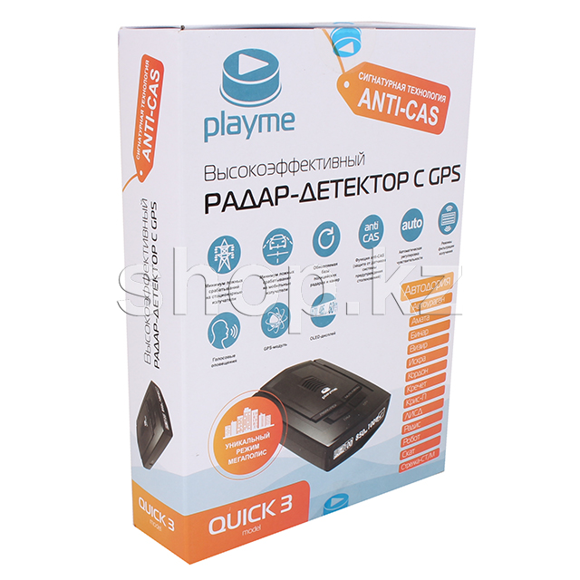 Playme QUICK 3 - продолжение линейки высокоэффективных радар-детекторов Playme. Новинка получила обновленную прошивку, в которой минимизировано количество ложных срабатываний. QUICK 3 оснащен информативным OLED-дисплеем. Также в модели реализована минимизация ложных срабатываний от радарных датчиков современных автомобильных систем пассивной безопасности за счет реализации технологии anti-CAS (anti-Collision Avoidance System).