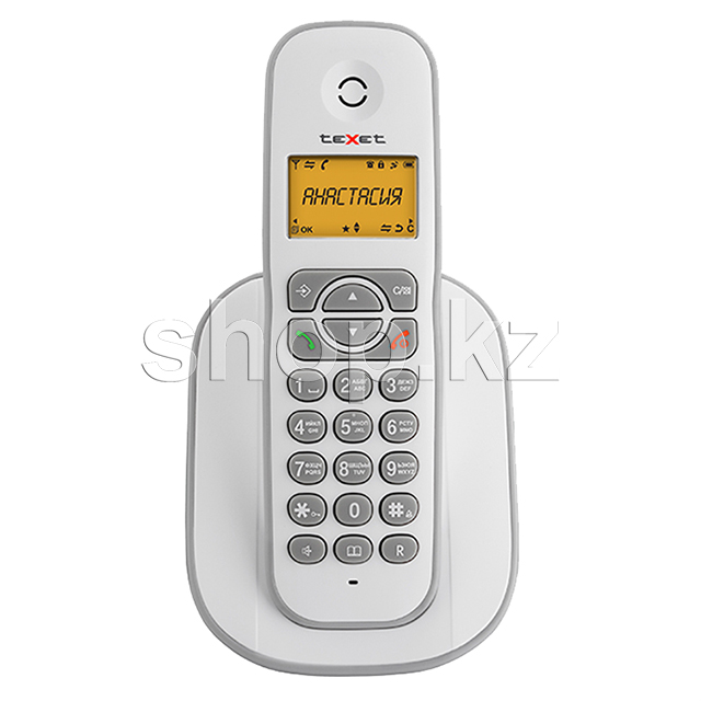 Радиотелефон оснащен дисплеем с яркой оранжевой подсветкой, на котором четко отображается время, будильник, статус связи между трубкой и базовым блоком, индикация заряда батареи и др. Меню и телефонная книга модели полностью русифицированы, а память телефона позволяет сохранять в записной книге до 20 имен и номеров, при этом контакты располагаются в алфавитном порядке.