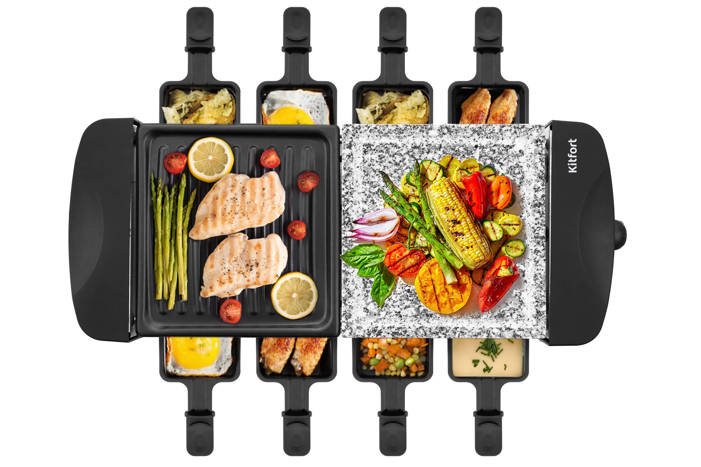 Раклетница Kitfort КТ-1647 - это устройство для приготовления разнообразных закусок, а также она может объединить вокруг себя тёплую компанию друзей. Это превосходная альтернатива традиционным застольям! Убедитесь сами!