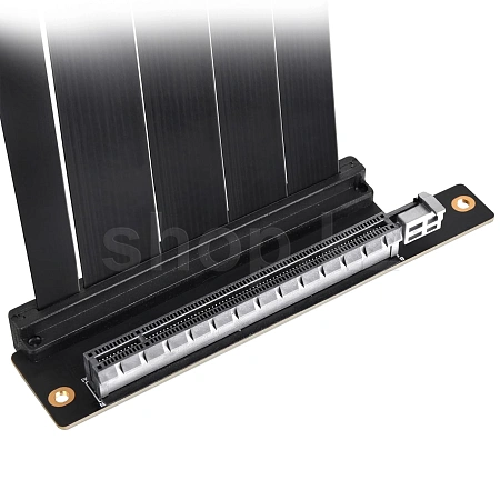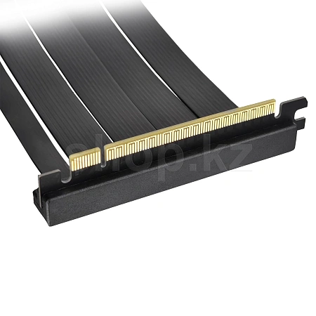 Кабель имеет двойную конструкцию с изгибом 90 градусов, которая соединяет материнскую плату и графический процессор, что позволяет укладывать кабель горизонтально, экономя при этом пространство.