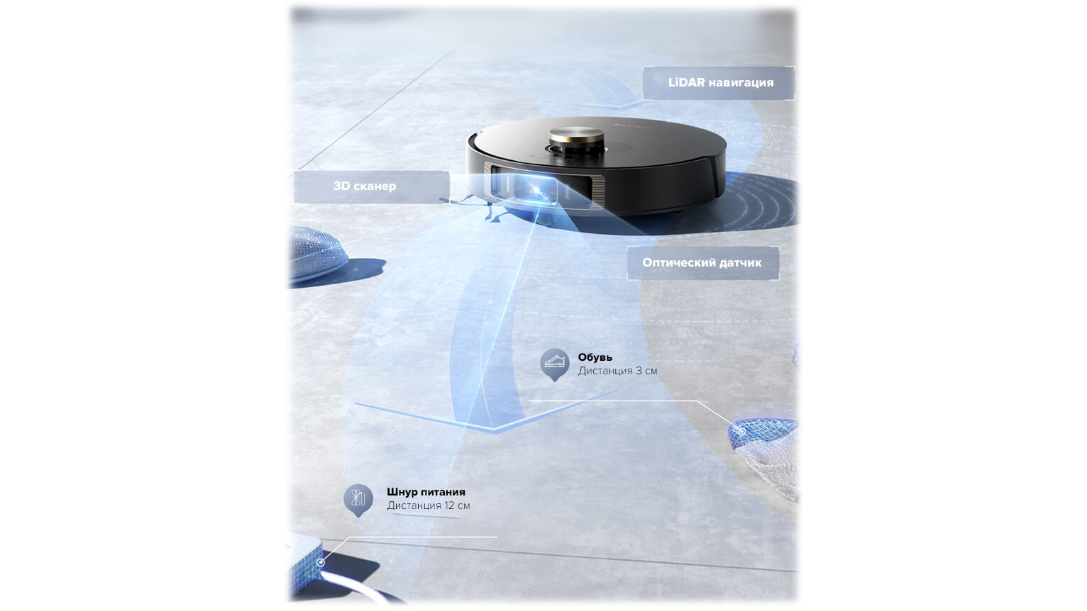 Встроенная светодиодная подсветка помогает роботу распознавать до 55 предметов домашнего обихода и планировать траекторию уборки даже в плохо освещенных местах и темных помещениях.
