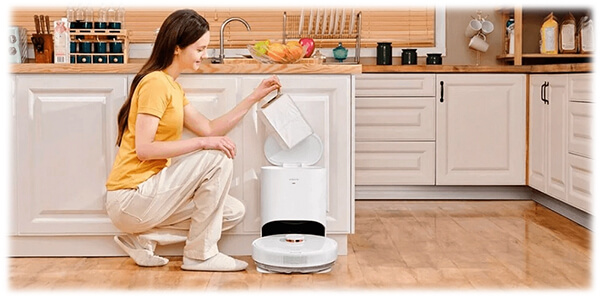 Преимуществом робота, несомненно, является станция для самоочистки, которая освободит вас от грязной работы по обслуживанию бытовой техники. В комплекте поставляется 2 мешка объемом 2.5 литра для размещения внутри станции.