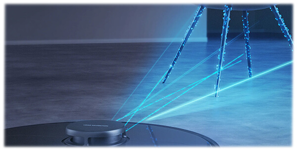 Лазерная навигационная технология сканирования 360° создает редактируемую карту напольных покрытий в вашем доме уже при первом запуске. При этом пылесос работает системно, а не просто беспорядочно переезжает от стены к стене.