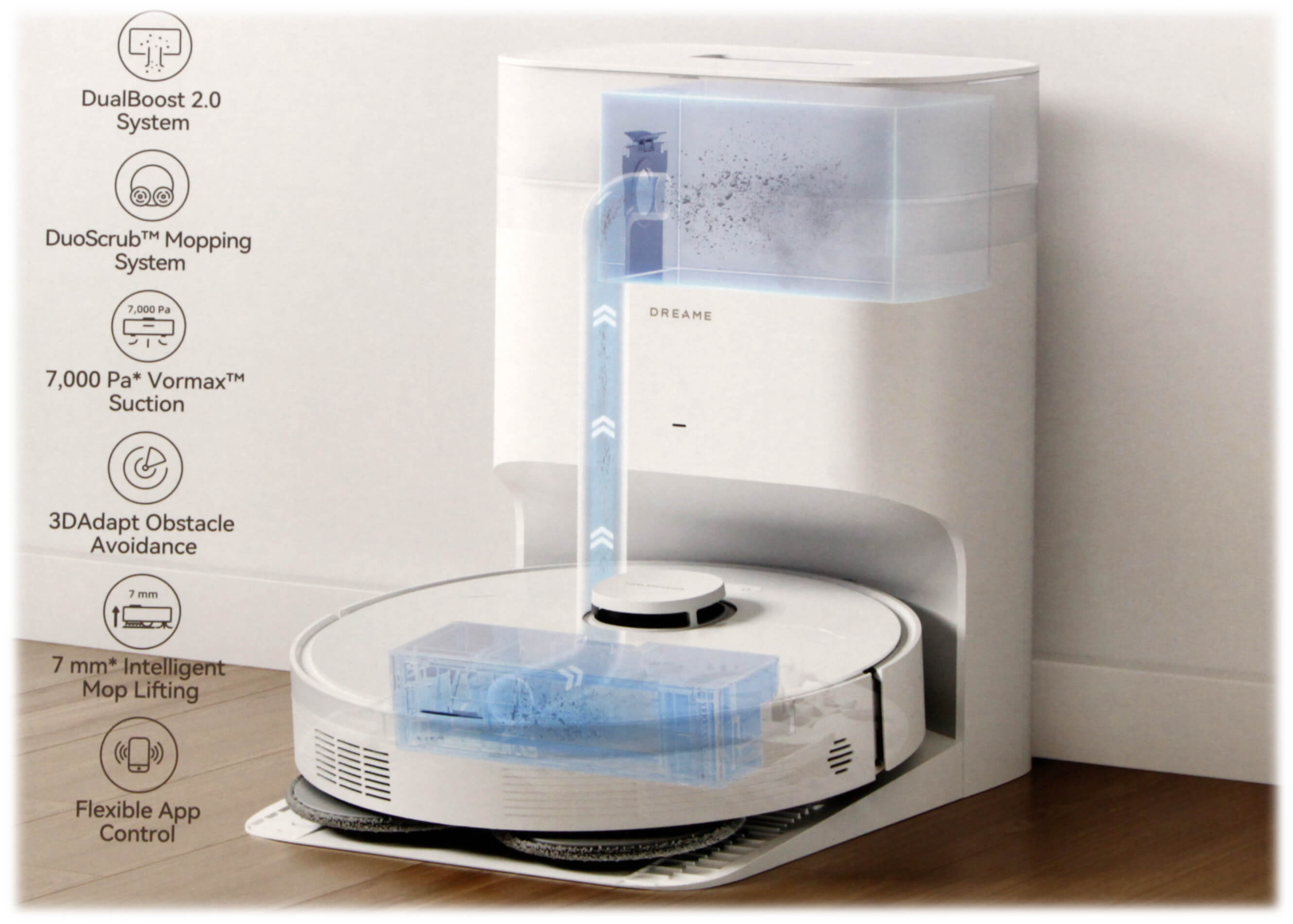 Усовершенствованная система AI Action использует RGB-камеру и 3D-сканер со структурированным светом для быстрого сканирования пространства, подбора стратегии уборки и автоматической генерации маршрутов в зависимости от препятствий, типа напольного покрытия и площади помещения.