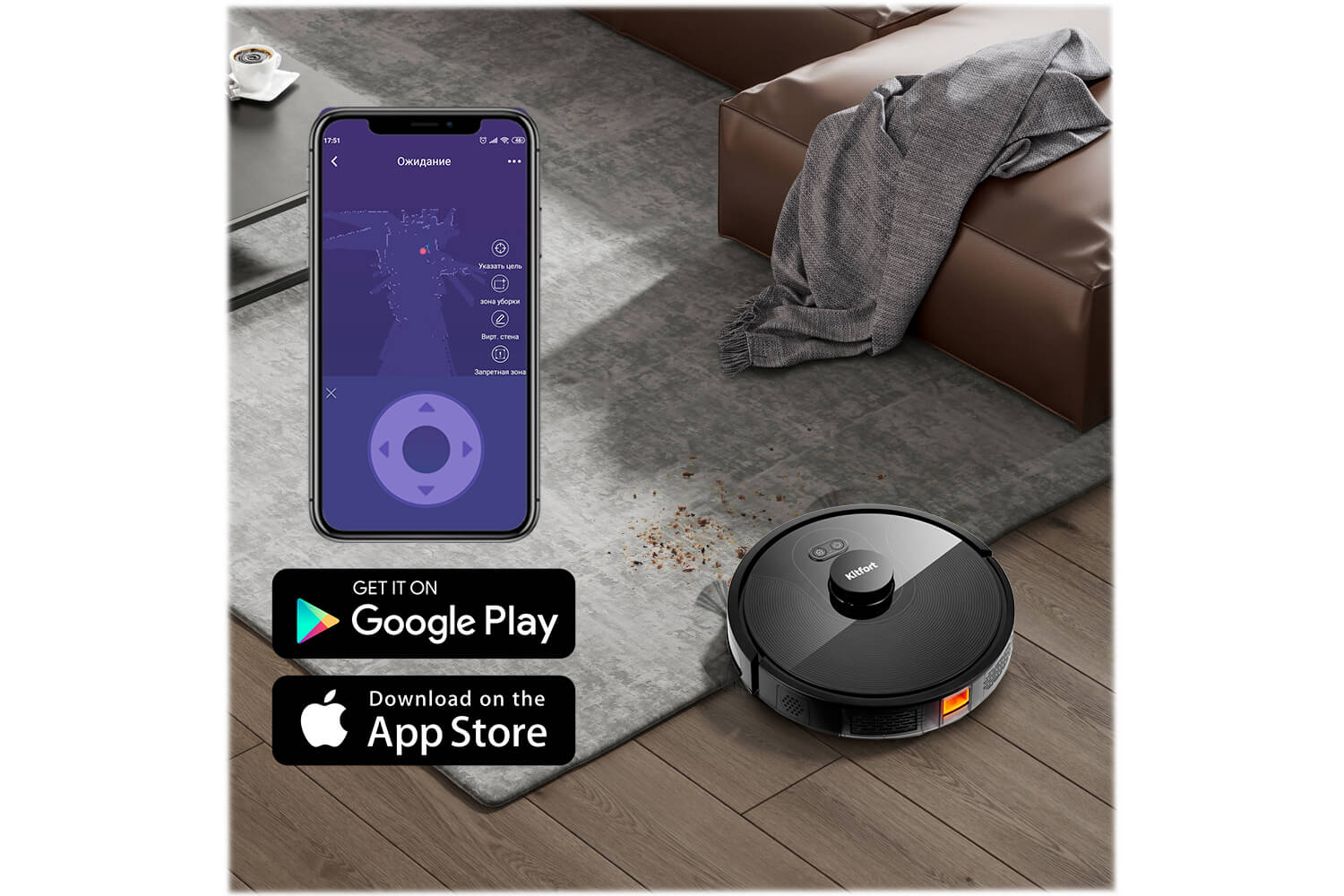 Оно поможет вам в управлении стильным современным роботом-пылесосом Kitfort КТ-577 со смартфона по сети Wi-Fi. Находясь вне дома, вы можете дистанционно запустить уборку, настроить график уборки, поменять мощность, посмотреть карту уборки помещений и т.д