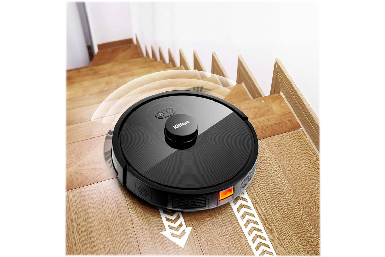Благодаря оптическим датчикам, которые срабатывают на вертикальные препятствия и при столкновении с ними, и микропереключателям, пылесос меняет направление движения и продолжает уборку. Датчики поверхности не дают упасть с больших перепадов высоты.