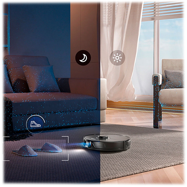 Технология ReactiveAI 2.0 сочетает в себе структурированное 3D–сканирование, которое анализирует объекты в окружающей среде и использует информацию для точного распознавания препятствий. Система световой чувствительности активирует подсветку в темных местах, благодаря чему уборку можно совершать в любое время.