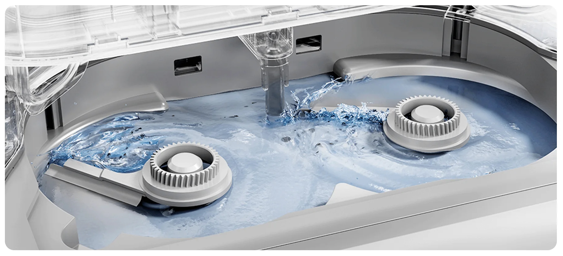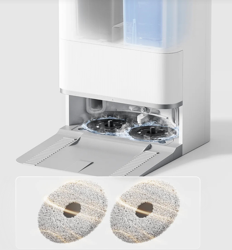 Благодаря двойным вращающимся скребкам, базовая станция справляется не только со сбором пыли и очисткой насадок для швабры; она также очищает и очищает стиральную доску во время мытья шваброй, уменьшая необходимость в частом ручном обслуживании.