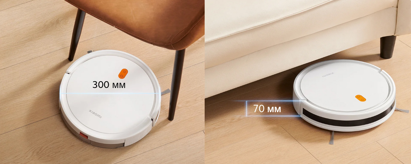 Компактный корпус размером 300 мм позволяет роботу легко перемещаться в ограниченном пространстве, не пропуская ни одного участка уборки.