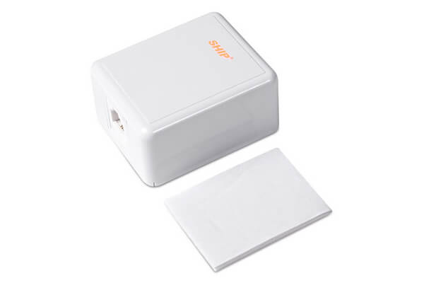 Для внешнего монтажа. Корпус настенной розетки состоит из основания и крышки. Конструкция выполнена из высококачественного пластика. Внутри расположен модуль RJ-11.