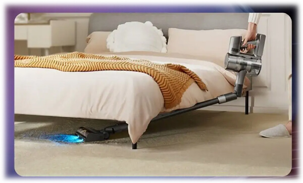 Светодиодная подсветка позволяет осветить область перед беспроводным пылесосом Xiaomi Dreame R20, что позволяет вам видеть пыль, грязь и мелкие частицы на поверхностях. Это особенно полезно при уборке под мебелью, в углах или в других труднодоступных местах, где освещение может быть ограничено.