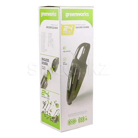Ручной аккумуляторный пылесос Greenworks G24HV 24V 4700007 (Аккумулятор и зарядное устройство в комплект не входят) подходит как для сухой, так и для влажной уборки.