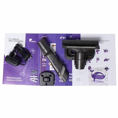 КТ-5122 комплектуется турбощёткой, которая качественно очищает гладкие поверхности и ковровые покрытия с коротким ворсом. На ней располагается инфракрасный сенсор, оценивающий уровень пыли, от чего в автоматическом режиме регулируется мощность пылесоса.
