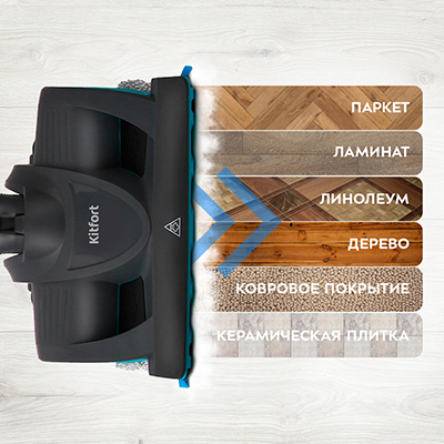 Вам больше не нужно сначала пылесосить, чтобы провести влажную уборку пола, потому что вы можете делать это одновременно! Паровой пылесос Kitfort КТ-535 сначала всасывает пыль и мелкий мусор, а затем очищает поверхность от грязи при помощи горячего пара.
