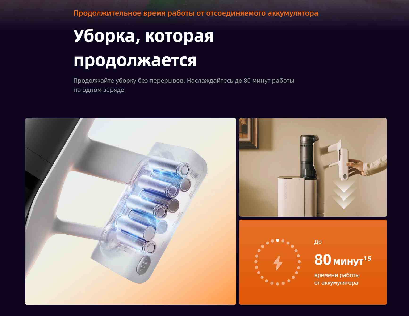 До 80 минут времени работы от аккумулятора