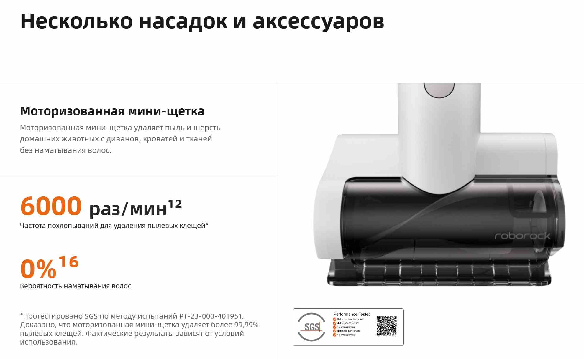 Насадки: мини-щётка, щелевая насадка 2-в-1, основная щётка с защитой от наматывания волос (JawScrapers Hybrid)