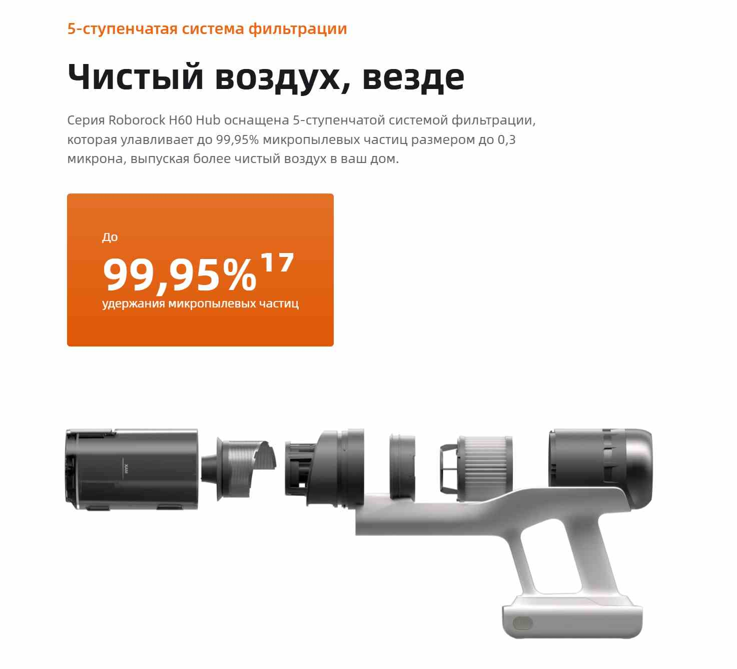 Фильтрация высокого уровня: 5 степеней + 9 циклонов, эффективность очистки воздуха до 99,95 %