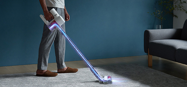 Пылесос оснащен настенным зарядным кронштейном, который заряжает и хранит. Снимаем на чистку, ставим обратно на зарядку. Дополнительный слот расширения с двойной зарядкой может заряжать две батареи одновременно, избегая необходимости частой подзарядки.