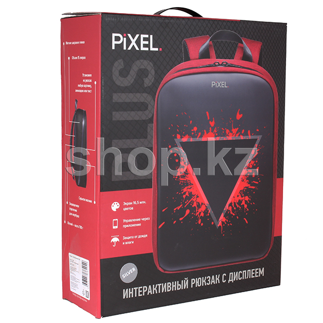 PIXEL PLUS - SILVER (светло-серый) PIXEL BAG - первый рюкзак со встроенным LED-дисплеем, который управляется через приложение. Ты можешь установить на дисплей любое изображение, анимацию, текст, и даже нарисовать свою собственную картинку! Будь ярким и современным, выделяйся и делись с миром своими эмоциями вместе с рюкзаком PIXEL!