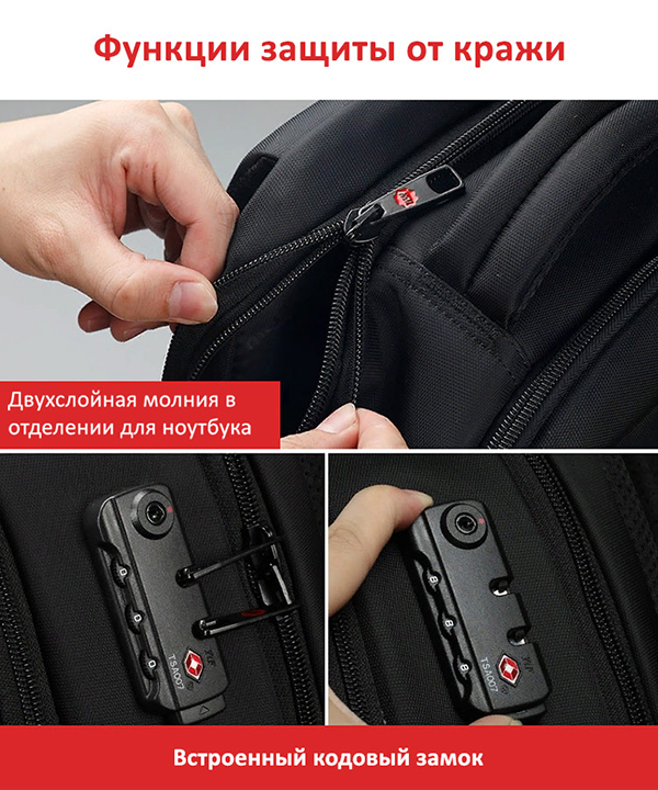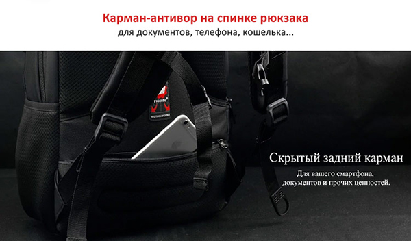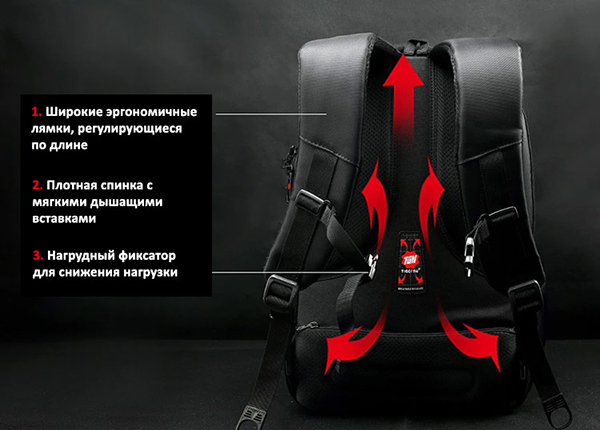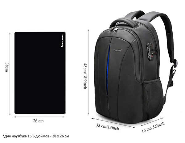Рюкзак Tigernu T-B3105A с кодовым замком, USB портом и отделением для ноутбука 15.6 дюймов