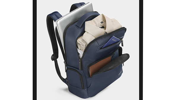 Функциональный рюкзак из качественного материала оксфорд с большим количеством карманов подойдет для рабочих задач и путешествий. Рюкзак выполнен в синем цвете.