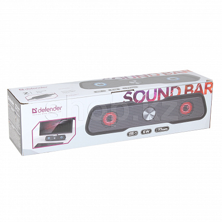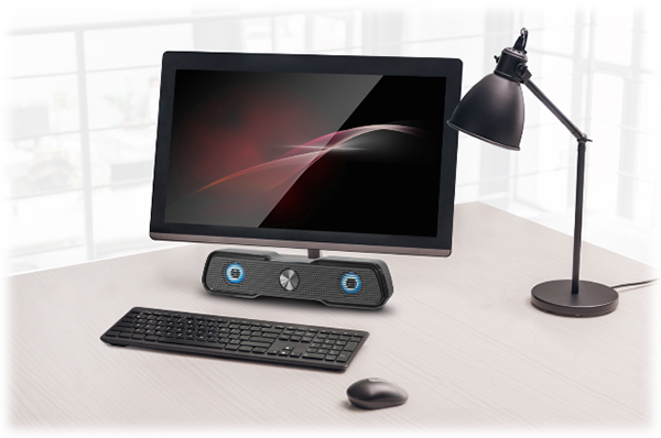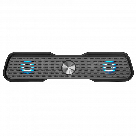 Стильный саундбар с яркой светодиодной подсветкой. Регулятор громкости на кабеле. Резиновые ножки предотвращают скольжение по поверхности стола. Питание осуществляется через порт USB.