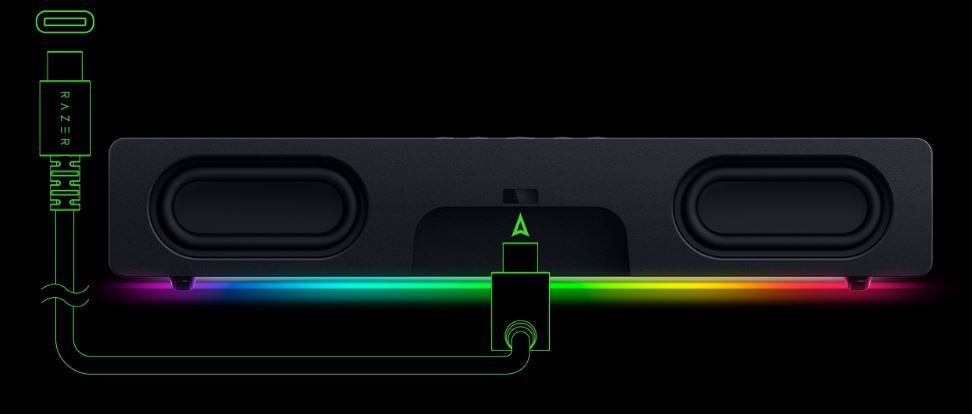 Razer Leviathan V2 X — компактный игровой саундбар для компьютера с питанием от USB Type-C, который станет достойным дополнением вашего игрового места, когда вы играете, смотрите фильмы или слушаете музыку.
