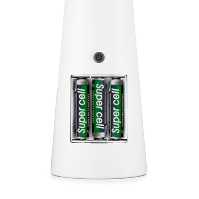 Экономен в потреблении На обратной стороне устройства находится разъём для батареек. Низкое энергопотребление обеспечивает бесперебойную работу устройства от одного комплекта из трёх батареек AAA. |