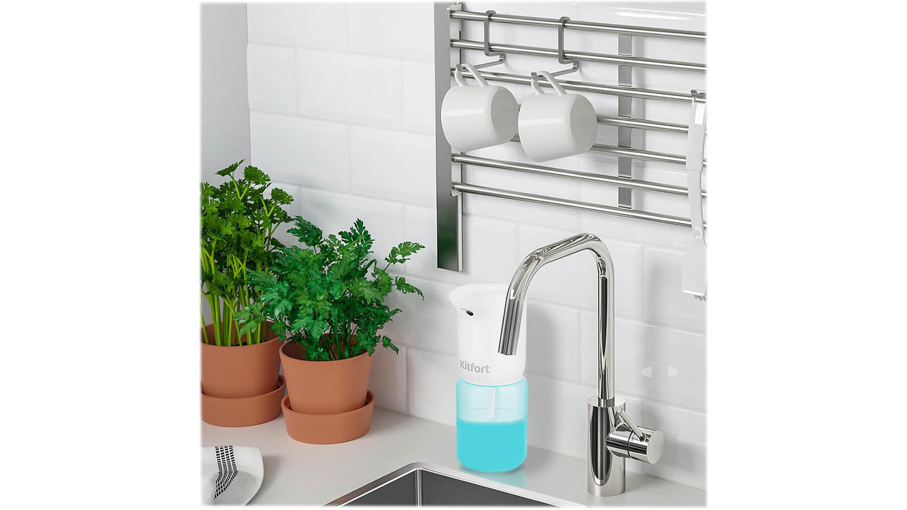 Kitfort KT-2046, White-Blue сенсорлық сабын ыдысы