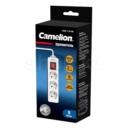 Camelion CMS-113-3M, 3 розетка, 5м, White желілік сүзгісі