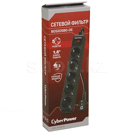 Сетевой фильтр CyberPower B0520SB0-DE выполнен в корпусе из полимерного пластика, окрашенного в черный цвет. Защищает подключенные потребители от импульсных высоковольтных помех, резкого превышения напряжения в сети. Имеется надежный автоматический предохранитель, качественный кабель с длиной 1.8 метра и Г-образной вилкой. Защищен от попадания влаги и воды по стандарту IP20.