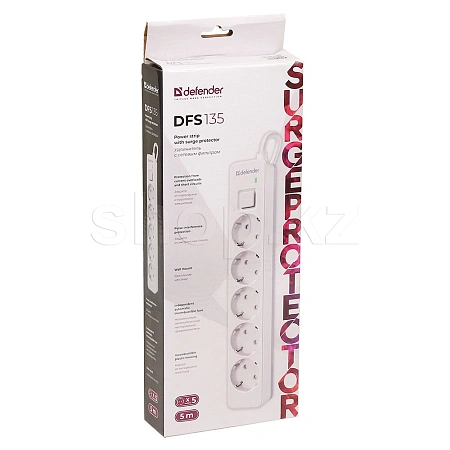 Сетевой фильтр Defender DFS-135, 5 розеток, 5м, White
