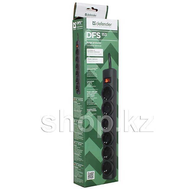 Сетевой фильтр Defender DFS-153, 6 розеток, 3м, Black