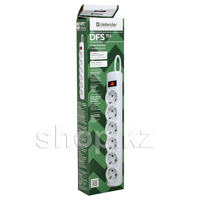 Defender DFS-153, 6 розетка, 3м, White желілік сүзгісі