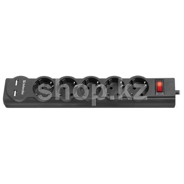 Defender DFS-755, 5 розетка, 5м, 2хUSB, Black желілік сүзгісі