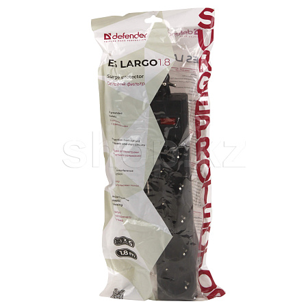 Сетевой фильтр Defender ES Largo, 5 розеток, 1.8м, Black