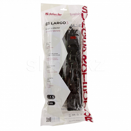 Сетевой фильтр Defender ES Largo, 5 розеток, 3м, Black
