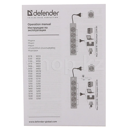Сетевой фильтр Defender G350, 3 розетки, 5м, Black