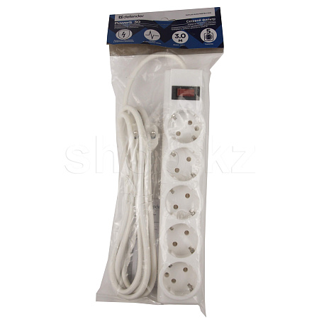 Сетевой фильтр Defender PowerS 30, 5 розеток, 3м, White