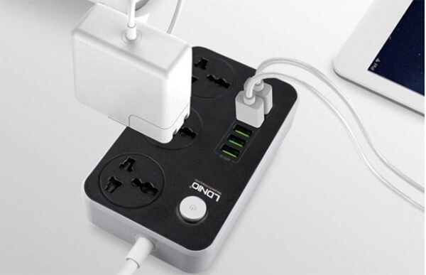 LDNIO SC3604 - сетевой фильтр на 3 розетки для подключения электроприборов с максимальной мощностью до 2.5 кВт и с шестью портами USB для быстрой зарядки гаджетов. Сетевой фильтр с USB LDNIO SC3604 не только "разгрузит" розетки, но и избавит вас от необходимости постоянно пользоваться многочисленными адаптерами питания. Шесть умных разъемов USB подстроятся под любое мобильное устройство, будь то планшет, смартфон, USB камера и пр. для эффективной и безопасной работы или зарядки аккумулятора.