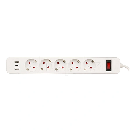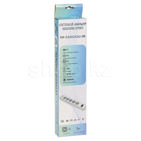Сетевой фильтр SMART SM-GS05CK3U-3M, 5 розеток, 1хUSB Type-C, 2xUSB, 3м, White