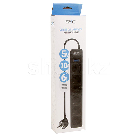 Сетевой фильтр SVC ZC6S-50M, 6 розеток, 5м, Black