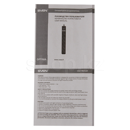 SVEN Optima 6 розеток — это оптимальная защита для домашнего и офисного оборудования: компьютерной и оргтехники, аудио-, видео- и электронной аппаратуры.