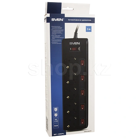 Модель Sven SF-05PL в черном корпусе из негорючего пластика оснащена пятью розетками с индивидуальными выключателями и световой индикацией рабочего состояния.